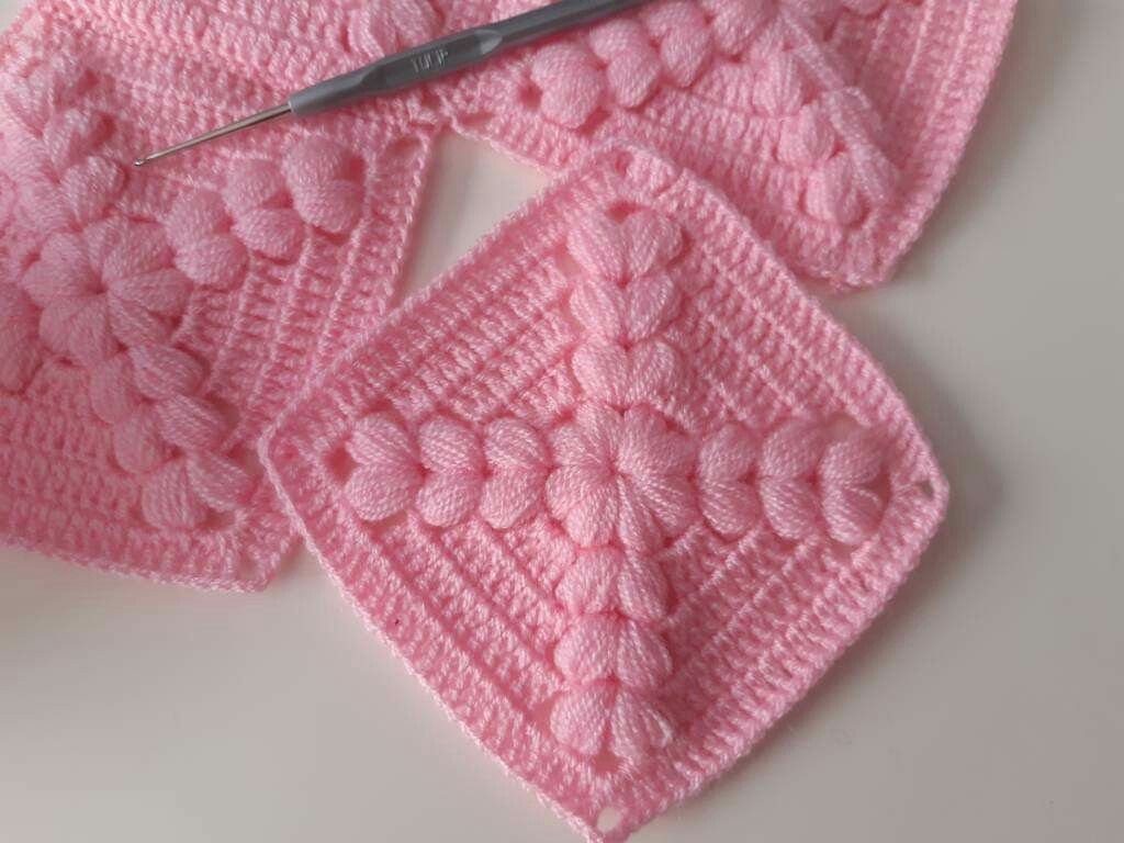 This square is also perfect for modular projects. You can make several squares and join them together to create a cozy baby blanket, a stroller cover, or even a decorative nursery piece. It’s beginner-friendly with a touch of intermediate detail, making it a great project for crocheters looking to expand their skills.