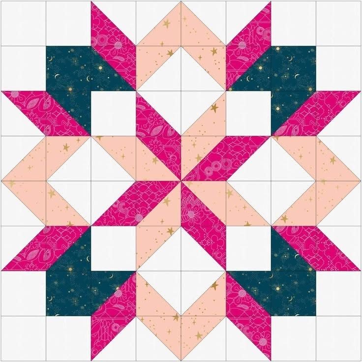The Carpenter Star works best when using three bold prints for the star design and a contrasting background fabric. Choosing a strong background helps the star stand out clearly and highlights the geometric shapes of the block.